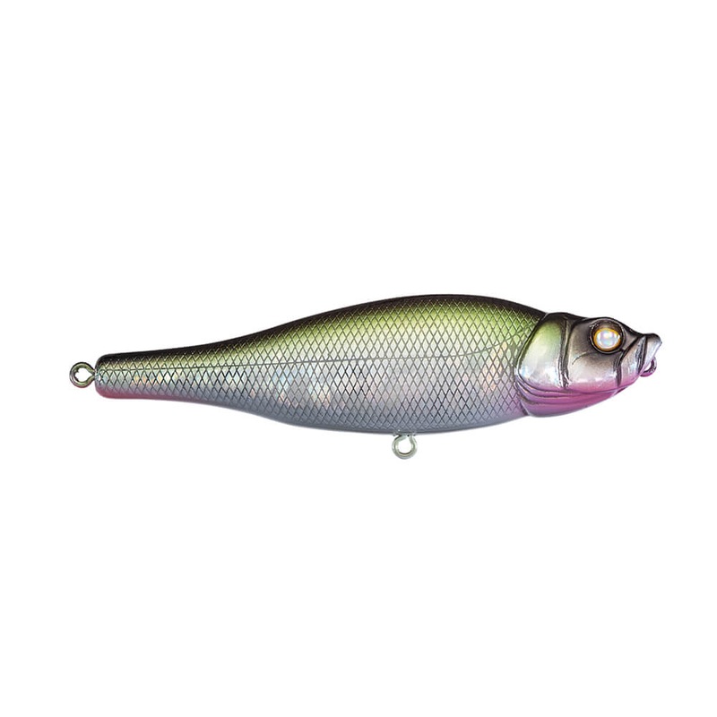 A deadly surface that is deadly for taking bass in calm and clear conditions. An instant response lure that will respond to the gentlest of rod movements or changes in retrieve speed. It is particularly effective when fished very slow when seeking out the wariest of fish. The subtle cupped face generates a gentle spit as the lure is worked and the design promotes a slow slide and roll. An internal rattle adds to the attraction. The streamlined shape coupled with the moving ball bearing gives this a weighted design that allows long, accurate casts. It comes fitted with quality components including two #2 Owner ST46 trebles.