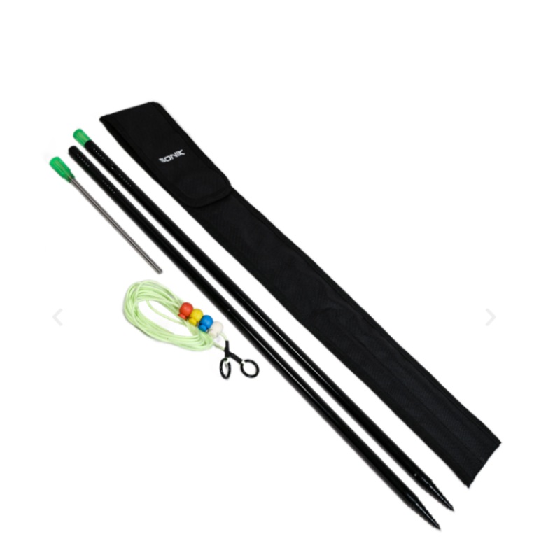 > Bastoncini distanziatori che ti coprono su qualsiasi condizione del terreno> Punta a vite e barra di torsione per i terreni pi difficili> Punta della vite lavorata solida> La barra di torsione si ripone all’interno del distanziale> Cavo di misurazione da 12 piedi> Quattro segnalatori di cordoni ad alta visibilit> Punte acriliche ad alta visibilit con fessura per isotopo> Fornito in una pratica custodia per il trasporto