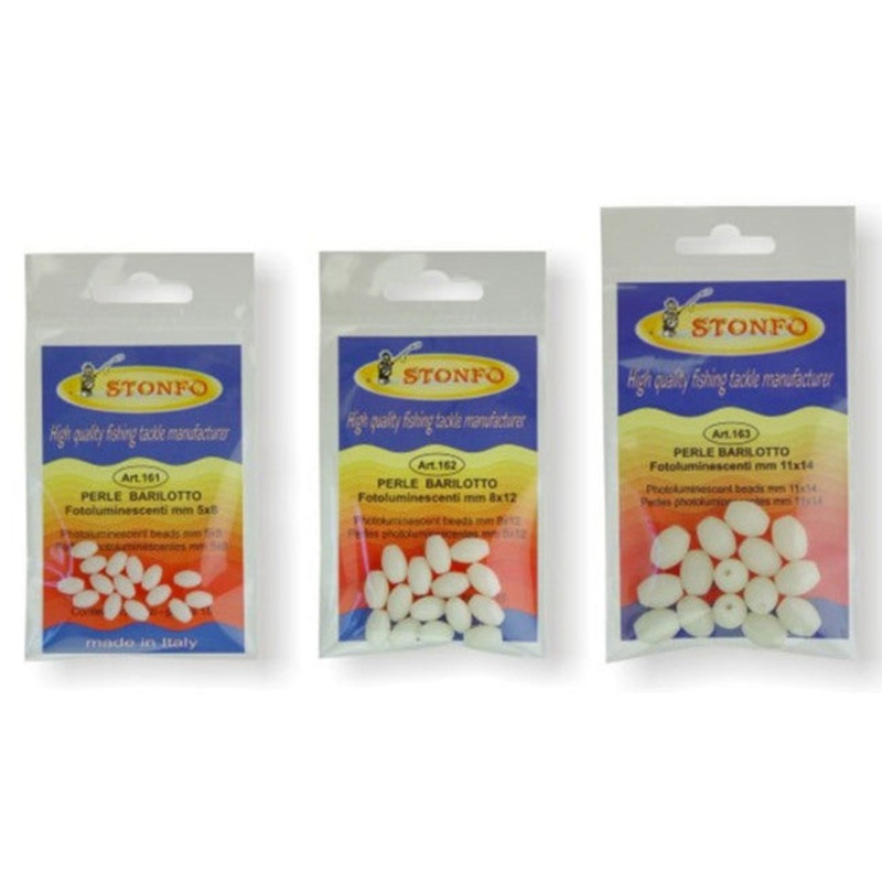 Hard plastic luminous beads by Stonfo in 3 different sizes.
