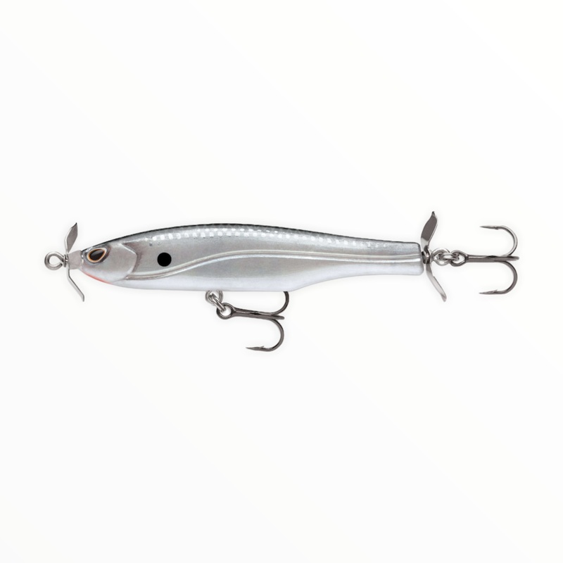 The Arashi Spinbait attracts wary suspended fish on the fall and during the retrieve with its delicate rolling action and revolving blades. Slow sinking – head down with a slight body shimmy and moving propellers as you count it down to depth. Counter Rotating Propellers- add subtle flash and vibration while insuring the bait moves in a straight path. 3-2 Prop Design creates vibration pattern the angler can feel ensuring the optimal slow retrieve speed to maximize the lures action and to maintain depth.