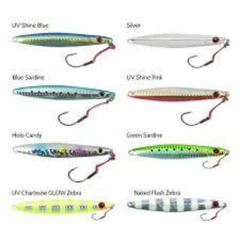 Micro in size but perfect for imitating small baitfish that big predators love to feed on. The streamlined design of the jig enables it to decend quickly down the water column and the the long symmetrical shape produces an erratic action when jigged vertically.
