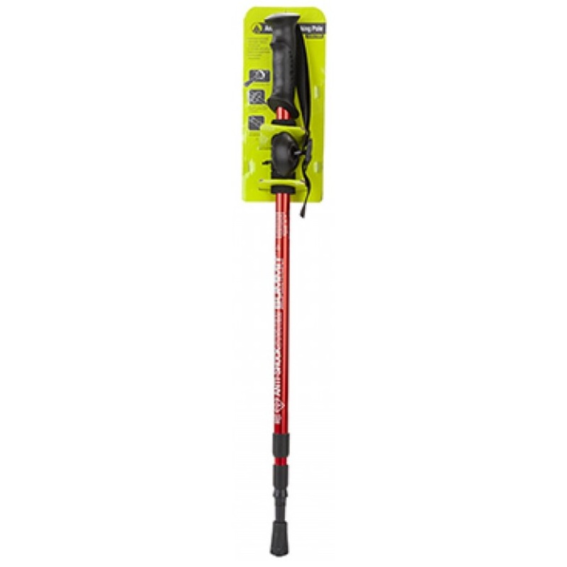 The 3 section trekking pole extends up to 135cm. It is made from lightweight aluminium and features an anti-shock function, twist on/off. It also comes with tip protector and loose ground ferrule basket. Supplied in 3 assorted colours.