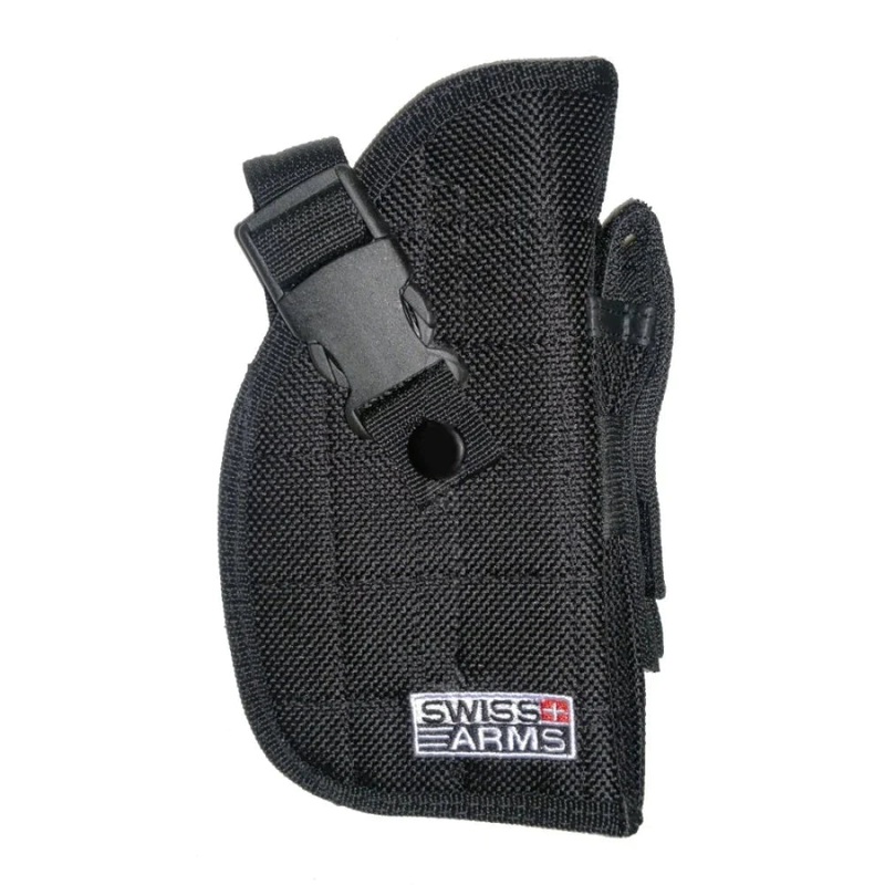 This particular model is manufactured by Swiss Arms out of durable nylon codura and is designed to fit the vast majority of common-size pistols e.g. 1911, M9, EU-Series, SIG, Walther PPQ, USP etc.