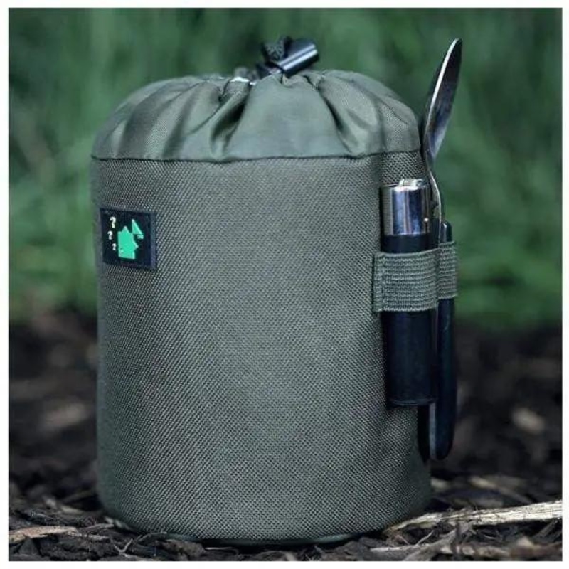 Thinking Anglers Gas Canister PouchSmall padded draw cord bag which fits around your gas canister keeping it warmer in the colder weather helping the gas maintain its performance. The small elastic loop on the side is for storing your spoon in.