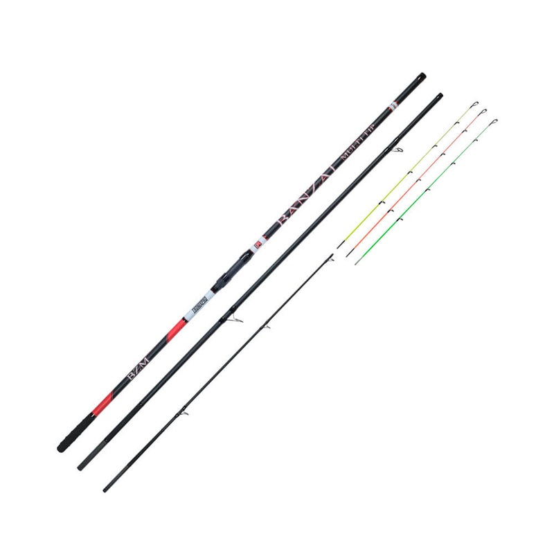 Designed to cast fragile baits to distance without breaking them up. Its the perfect rod to fish with when using delicate baits such as maddies and for fishing close in when a heavier three-piece or traditional beachcaster is too much. Its the ideal light beach fishing tool. Supplied with one glass and two carbon ledgering push-in tips to cover all light beach fishing situations. It has a progressive action and taper that allows you to get the best out of the rod throughout its casting range. Suited to casting weights between 50 and 150g and when fishing in calm conditions for mullet, flatfish, bass, bream, scad, mackerel, garfish and other smaller fishes, the perfect summer fishing rod. Ideal as a close-range tool for fishing up to 100 metres, with enough power to fish beyond that when required.