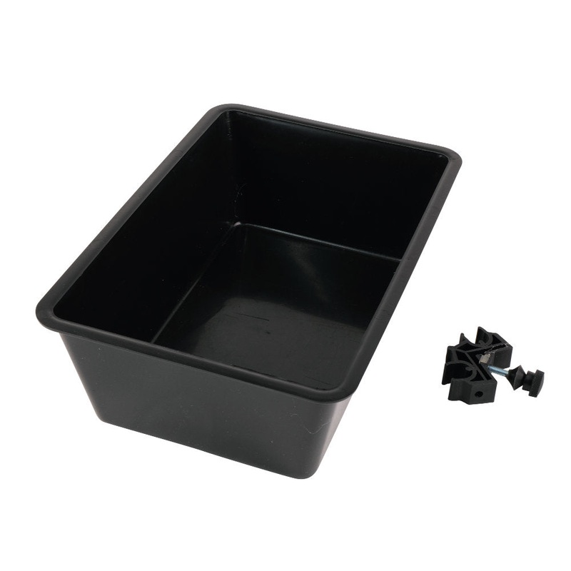 A deep, large tray which is used for storing baits, multiple baits in pots such as different types of worms, or for storing close-to-hand accessories.