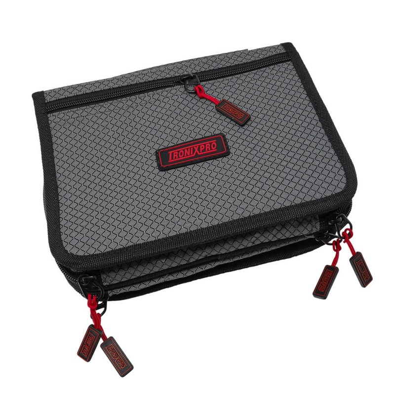 A double-sided organiser which features two independent zipped internal pockets. One side of the organiser features five, heavy-duty rig bags. The second side of the organiser is an empty, zipped compartment ideal for storing tools, line and other accessor