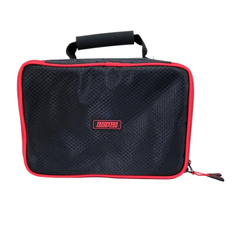 An all in one bag designed for anglers who fish with multiple reel spools. To keep everything together, you can keep a fixed spool reel and two spare reel spools together. The main compartment is large enough to accommodate even the largest fixed spools on the market. Two separate, padded pockets to the side will carry two spare spools securely. The bag is well padded, and there is plenty of separation between the reel and the spools to ensure that neither the reel nor the spare spools will be damaged on transit. The lid has a zipped mesh pocket that runs the full length, ideal for storing extra bits of kit such as shock leader material, spare spool bands and other close to hand reel items. An EVA foam handle makes it easy to lift the bag out of a box, tackle bag or the Tronixpro Rucksack, which the bag will fit neatly into. Made from a 420D Oxford Nylon which is water-resistant, wipe clean and tough.