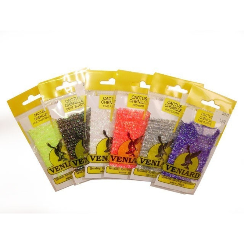 Veniard Cactus ChenilleA dazzling body material made from flashabou type fibres.Supplied on a card2 metres in lengthChoices: Fine 6mm Silver, Fine 6mm Gold, Standard 15mm Peach or Standard 15mm Silver