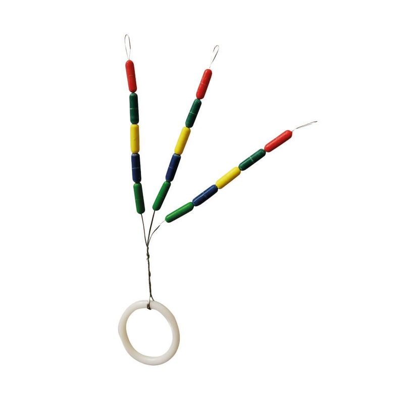 Chain of multi-colour silicon stoppers to attach snoods on the terminal tackle.