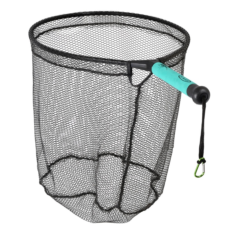 Vision Nymphmaniac NetThe Nymphmaniac net is the perfect size for the modern river angler; the lightweight aluminium frame has a short handle fitted with a maniac embossed EVA grip and a knotless, deep rubber net for trophy trout. Frame size 41cm x 50cmCod