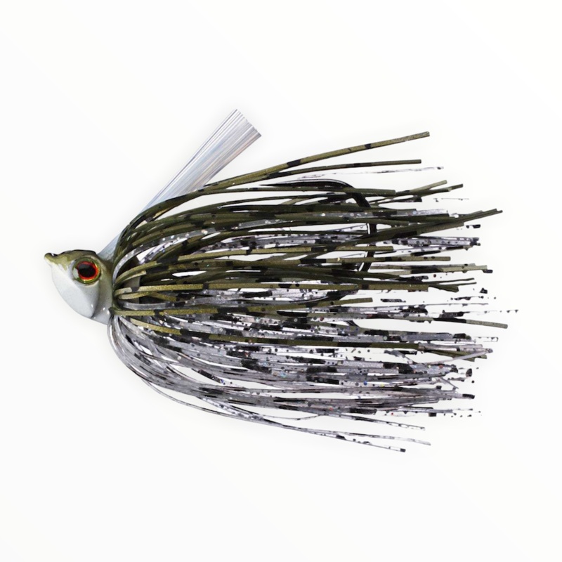 The Pulse swim jig has a custom built oversized 30 degree hook that allows for better hook sets and stands up to braided line use in heavy cover. The head shape is made to direct the hook point away from cover when contacting it.