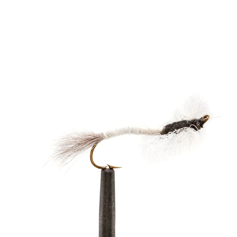 The White Spinner is designed to mimic the final stage of mayflies as they rest on the water’s surface. This fly features a delicate white body and wings, replicating the appearance of spent mayflies that trout and other fish species find irresistible. The realistic silhouette and subtle coloration of the White Spinner make it an effective choice during mayfly hatches, particularly in clear water where fish are highly selective.