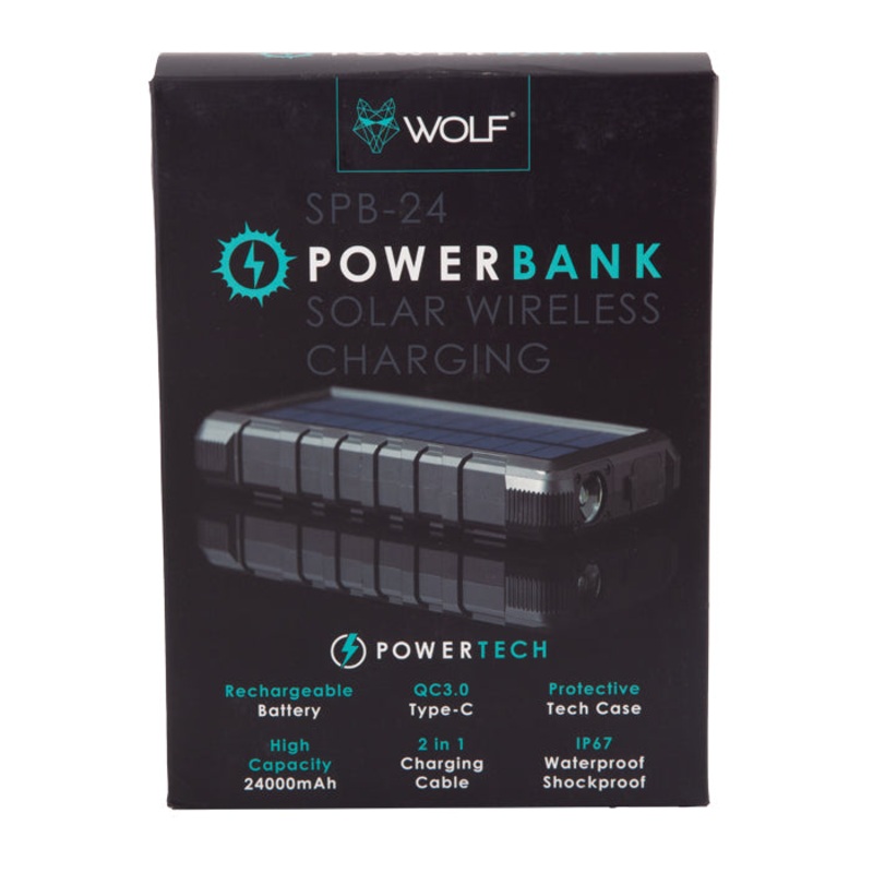 A high capacity Li-Polymer 24000mAh battery that comes with a built in Solar panel, ideal for topping up on charge whilst youre out on the bank. These can also charge via USB QC3 input ports when youre at home for a super quick charging time. As well as offering 3 types of USB output, Micro, Type-C and QC 3.00 to cover all your USB powered devices. This clever battery also gives you a wireless charging option that allows enabled devices to sit on top and draw a charge. Carrying an impressive IP67 waterproof and shockproof rating, these are tough enough to take a knock or two. In addition to all this the unit will also function as an emergency LED torch, with flash and SOS mode settings. Everything arrives in a neat tech storage case with a micro USB cable, a carabiner plus a Wolf two in one cable included.