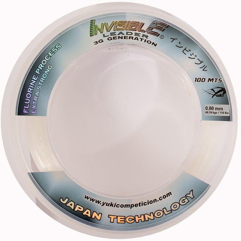 Yuki Invisible 3G Leader 100mYuki Invisible is an ultra-clear nylon which is virtually invisible under water. It is also ultra-tough with very high abrasion resistance. These higher breaking strains make very good rig body, shock leader or heavy trace line